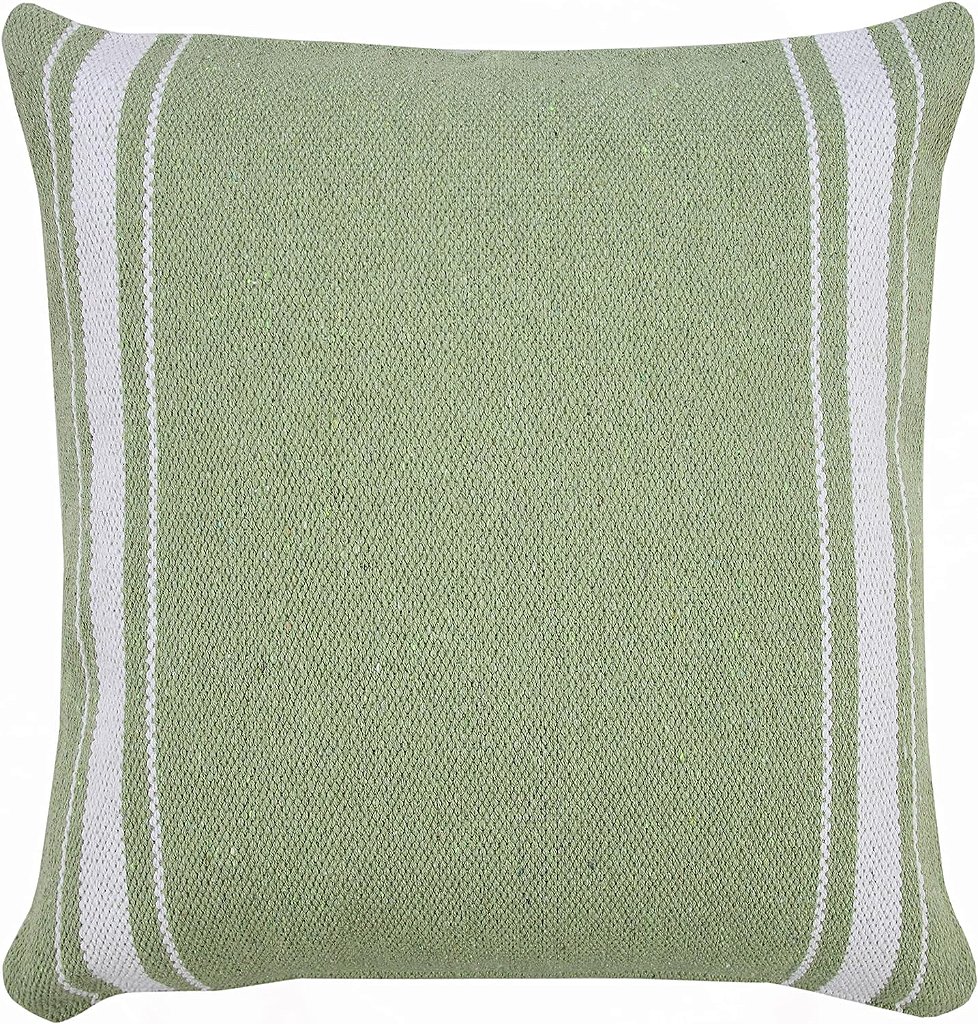 Almofada Decorativa Listrada Verde/Branca com Borda Equilibrada e Halo Destacado, da LR Home