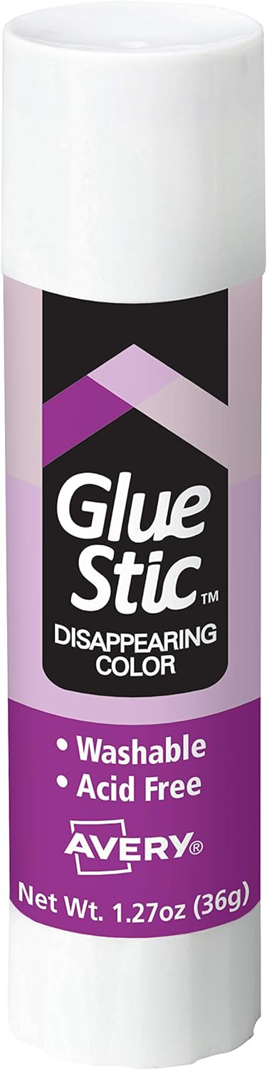 Bastões de Cola Avery Cor Roxa que Desaparece, 1.27 oz, Lavável, Não Tóxico, Cola Permanente, 12 Bastões de Cola (00226)