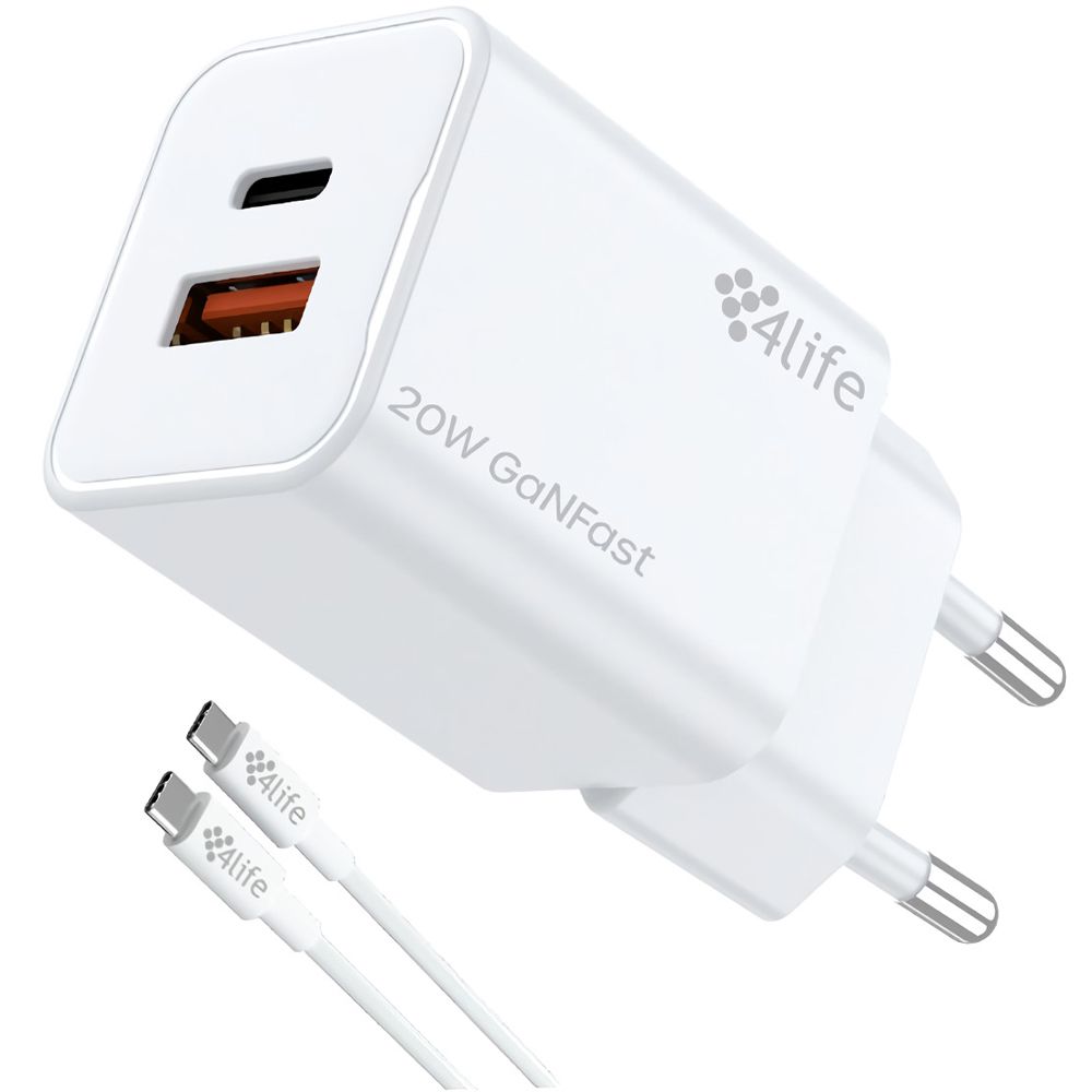 Carregador de Parede 4Life FL8220ACG 20 W + Cabo USB-C - Branco