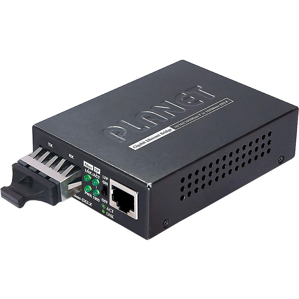 O conversor de mídia Planet GT-802 é um dispositivo poderoso que integra diferentes redes Ethernet, fornecendo velocidades de até 10/100/1000 Mbps através da porta RJ45. Além disso, oferece uma conexão de fibra segura e confiável. Com uma impressionante capacidade de transmissão de 22 a 55 km, garante uma comunicação confiável em longas distâncias. Este versátil conversor é compatível com vários modelos, permitindo uma conversão suave entre redes 10/100/1000BASE-T e 1000BASE-SX/LX. Utiliza conectores SC/SFP/WDM que suportam tanto meios monomodo quanto multimodo conforme necessário. A série GT-802 estende significativamente o alcance da comunicação, garantindo um desempenho Gigabit de alta qualidade através de cabos de fibra ó
