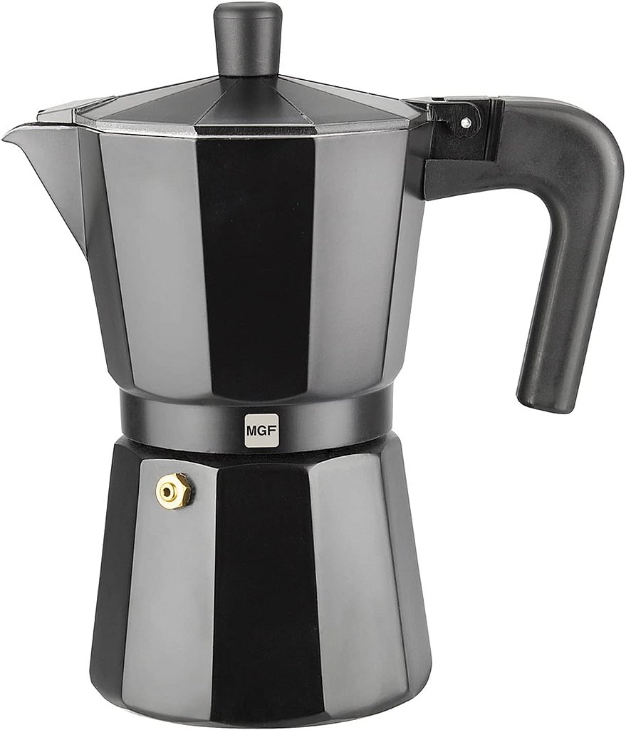 de cafeteira de café expresso MAGEFESA ® Kenia Noir para fogão, 12 xícaras / 20 oz, faça seu próprio café italiano em casa com essa cafeteira moka de café cubano, feita em alumínio esm
