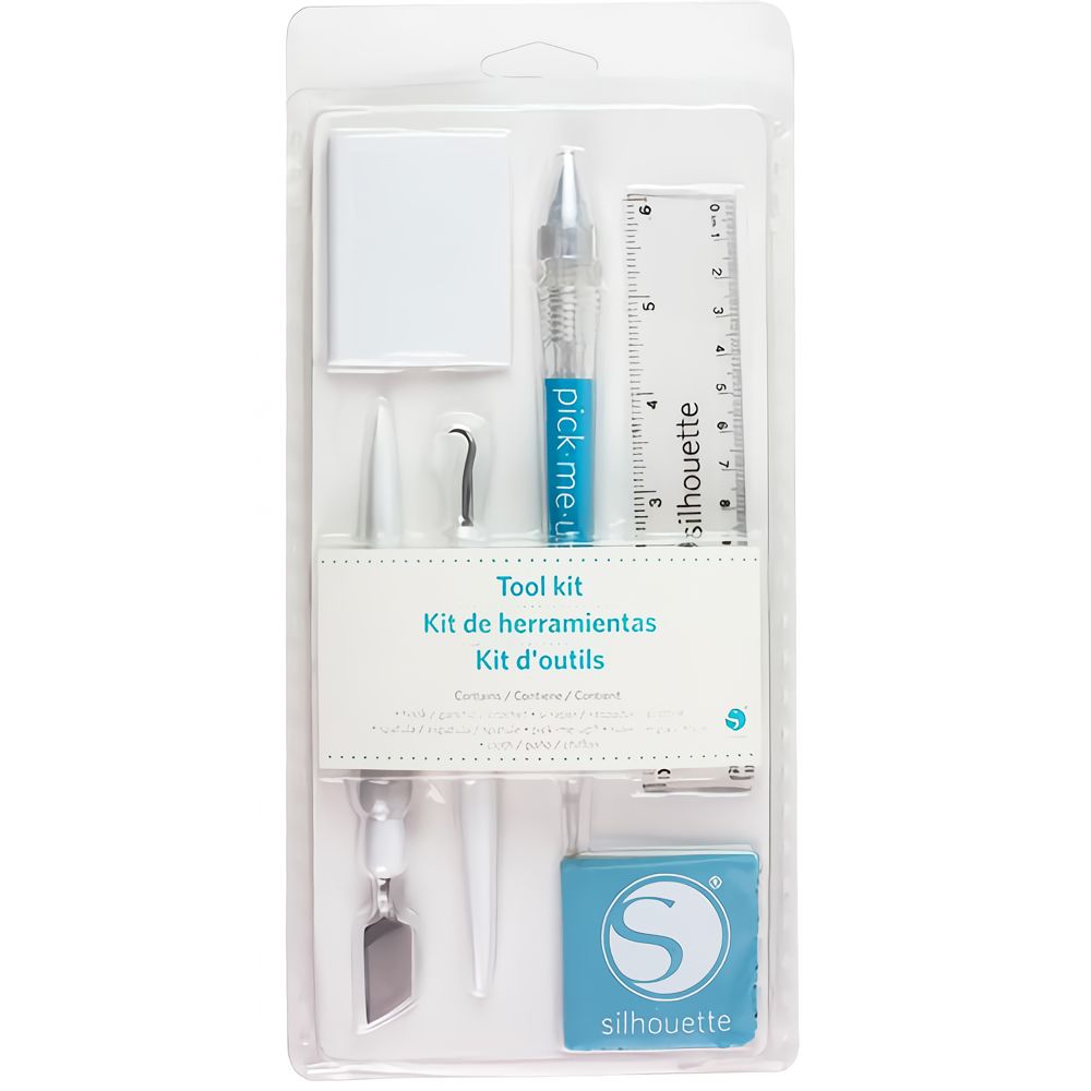 O Kit de Ferramentas Essenciais Silhouette é um conjunto completo que fornece tudo o que você precisa para seus projetos de artesanato e personalização. Composto por 6 peças na cor branca, este kit inclui uma variedade de ferramentas especialmente projetadas para facilitar o trabalho com vinil e materiais de transferência de calor. O kit conta com uma ferramenta de gancho para remover com precisão vinil e materiais de transferência de calor, uma ferramenta raspadora para aplicar o vinil e raspar o tapete de corte, uma espátula para levantar com cuidado peças delicadas, um lápis para manipular objetos pequenos, uma régua transparente de 6 polegadas para medições precisas e um pano de microfibra para manter sua máquina em perfeitas condições, limpando a tela LCD e mantendo