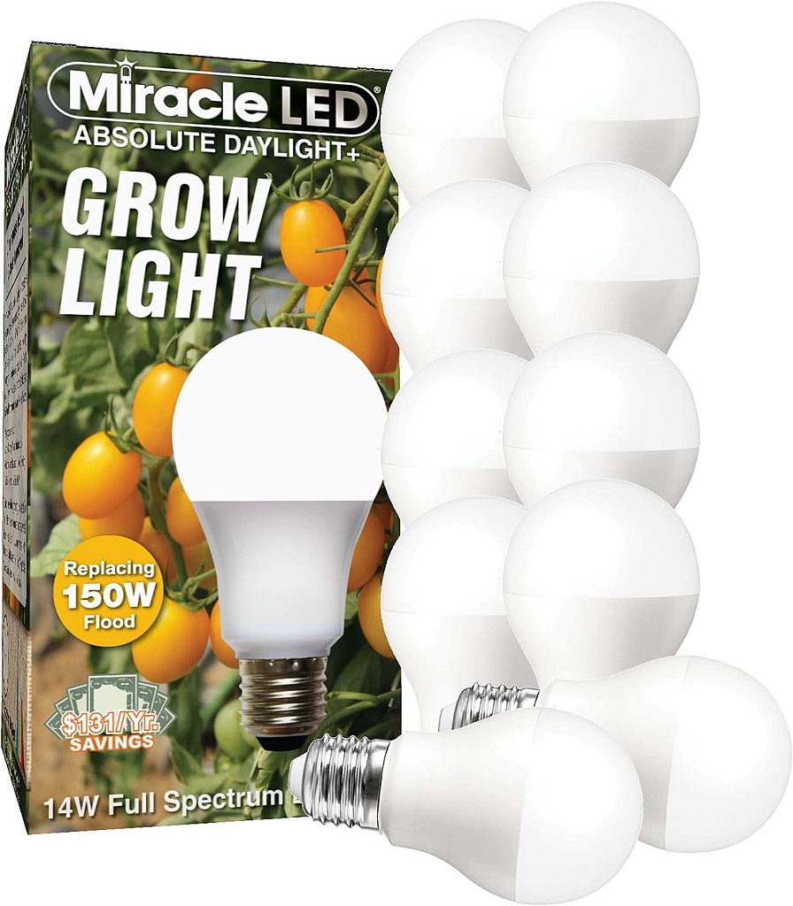 Lâmpada de cultivo de espectro completo Miracle LED Absolute Daylight Plus - Substitui 150W - Lâmpada de crescimento de plantas para horticultura caseira e jardinagem interna de plantas verdes, flores e sementes (