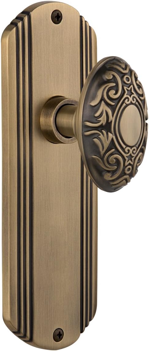 Este conjunto de maçanetas de porta da Nostalgic Warehouse é feito de latão sólido, com um acabamento em latão envelhecido, e inclui uma maçaneta de porta e uma placa escolhida para ambos os lados da porta, mecanismo de trava, fuso padrão, placa de batida e parafusos de montagem. A fechadura é do tipo chave e é feita de latão. Este conjunto é fácil de instalar, ideal para portas de passagem e possui uma garantia de 5 anos. O produto é fabricado na Índia e possui dimensões de 2,69 x 2,38 x 7 polegadas