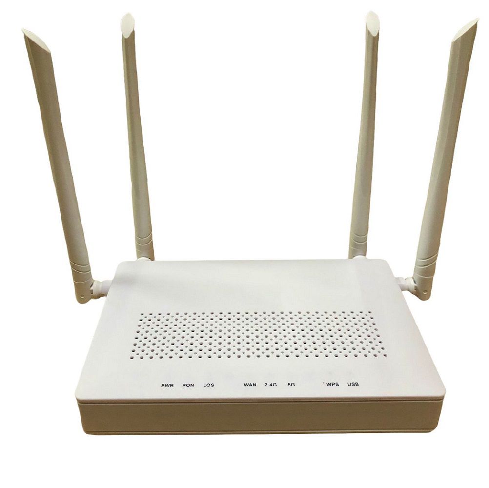 - Indicadores: PWR, PON, LOS, WAN, ETH1~ETH4, 2.4Ghz WiFi, 5Ghz WiFi, WPS, USB